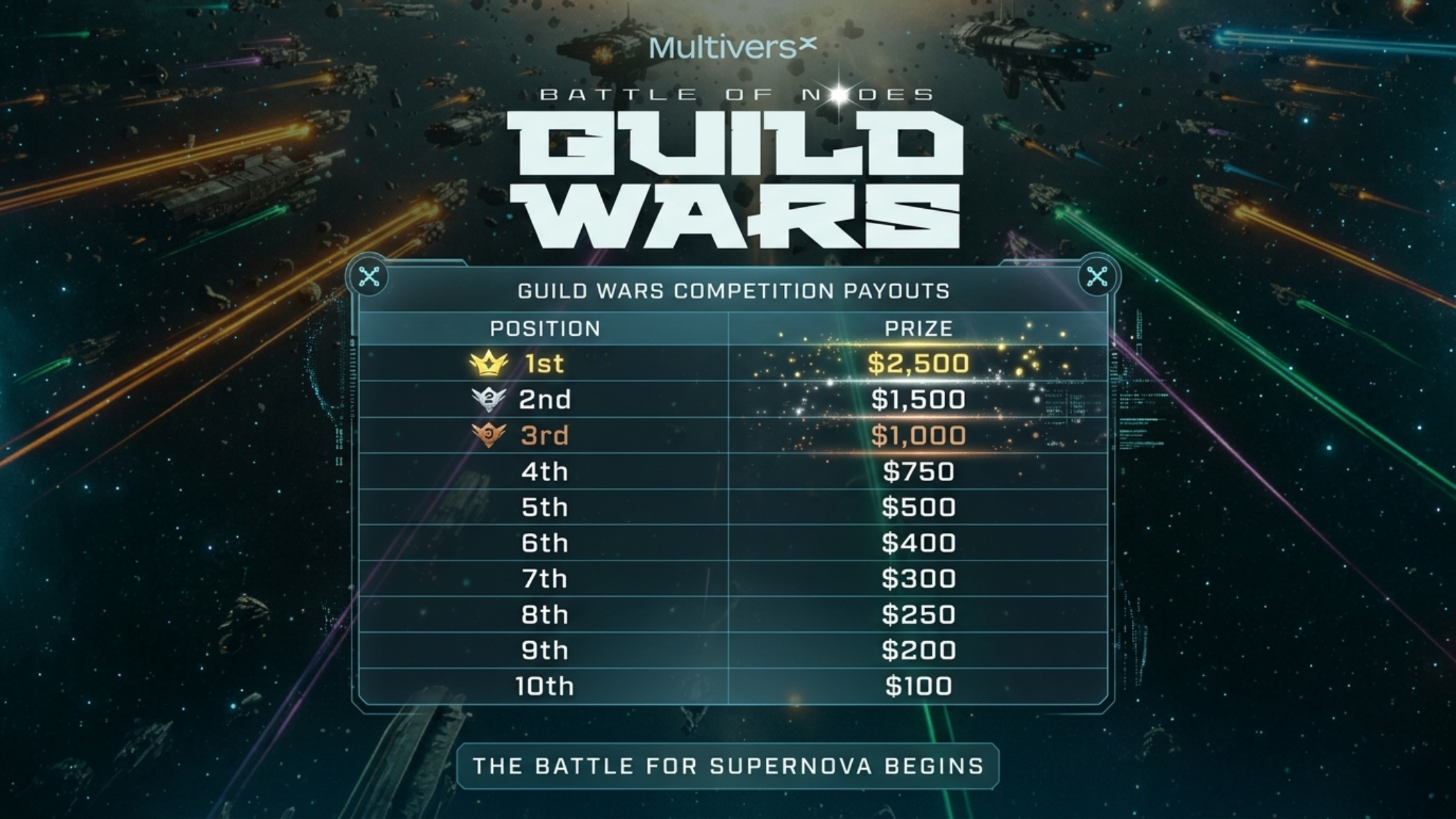 The total Guild Wars prize pool is $10,000 in EGLD, split across two pools.