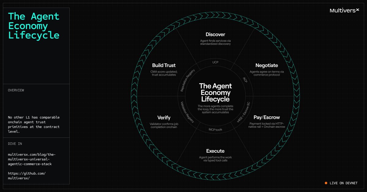No single protocol covers the full agent commerce lifecycle. That is the point. Each layer is purpose-built for a specific function. MultiversX has implemented all of them at the base layer, as a single coherent system.